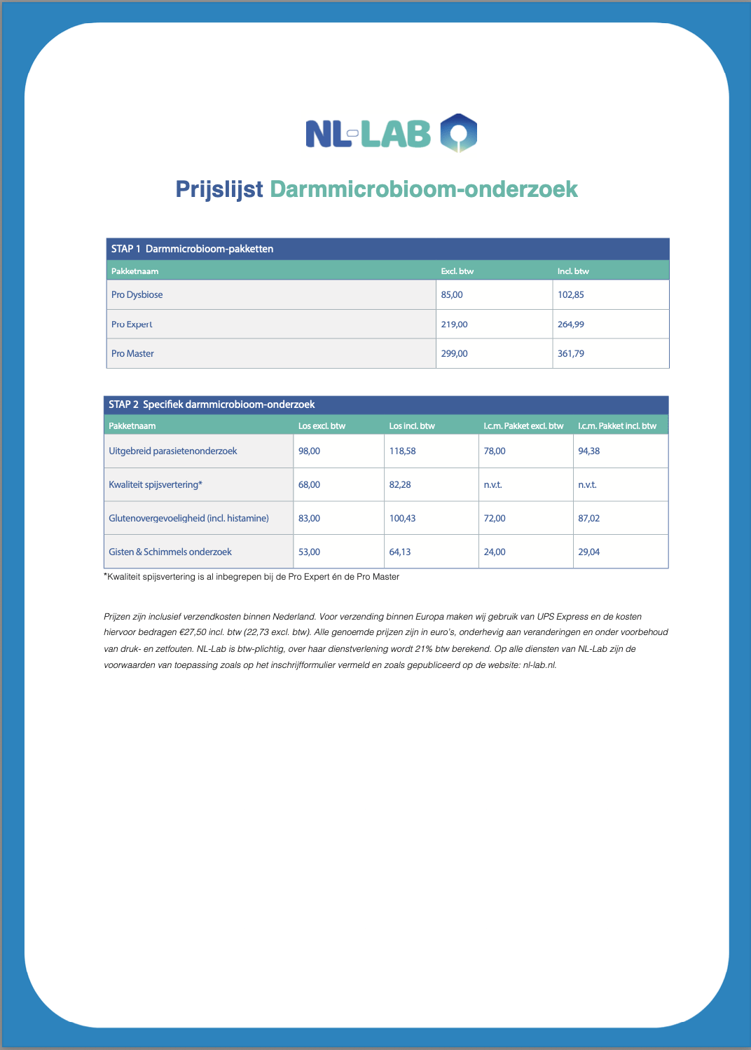These affordable packages are very suitable as an initial inventory of the intestinal microbiome or for monitoring over a longer period.